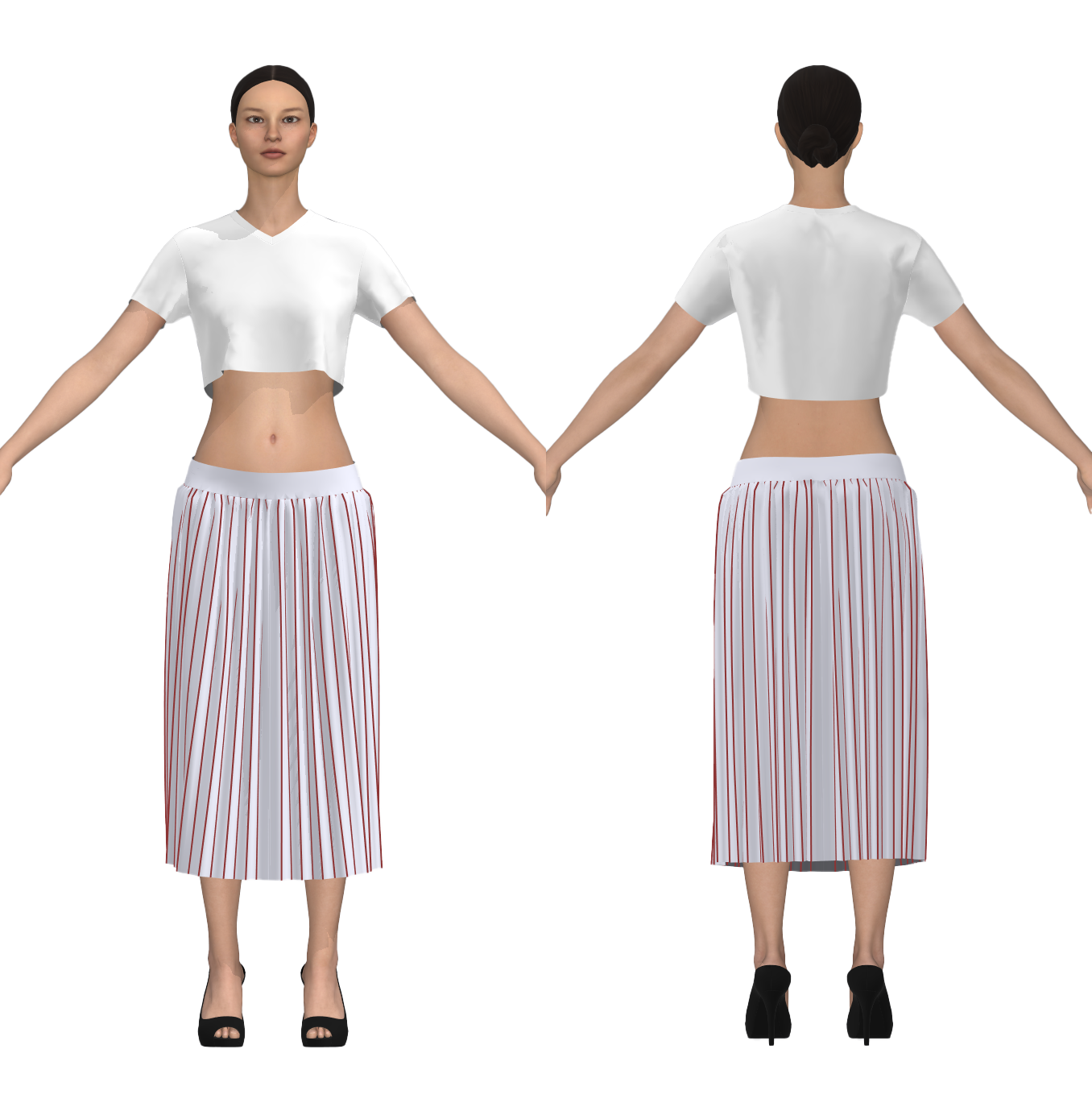 Cropped T-Shirt and Pleated Skirt